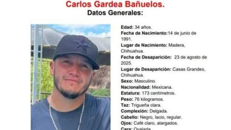 La Fiscalía solicita ayuda para encontrar a Carlos Gardea Bañuelos de 34 años, un albañil originario de Madera que desapareció el 23 de agosto del presente año en Nuevo Casas Grandes. Por ahora se desconoce su paradero.