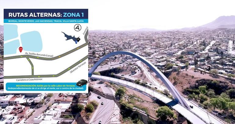 En la Zona 1, que comprende los fraccionamientos Boreal, Monteverde, Las Haciendas, Tracia y Villa Santa Lucía, las y los habitantes podrán utilizar la calle Labor de Terrazas, la cual conecta con la carretera Chihuahua–Cuauhtémoc, facilitando el acceso hacia el norte, sur o centro de la ciudad.