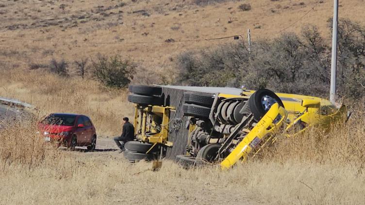 El conductor de un tráiler que transportaba 27 toneladas de algodón volcó en el kilómetro 4+500 de la carretera libre a Ciudad Juárez, conocida también como “Curvas del Perico”. Se quedó dormido al volante y fue por ello que ocurrió el percance.