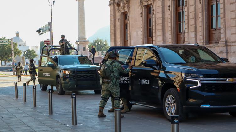 Elementos del Ejército y de la Secretaría de Seguridad Pública del Estado, arribaron al Palacio de Gobierno para la Mesa de la Construcción de la Paz. Estrategias de seguridad, especialmente en la Sierra de Chihuahua, son el foco de la reunión.