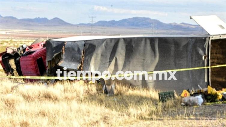 Un hombre perdió al vida tras la volcadura de un camión de carga a la altura del kilómetro 126 de la carretera que conduce a Ciudad Juárez.