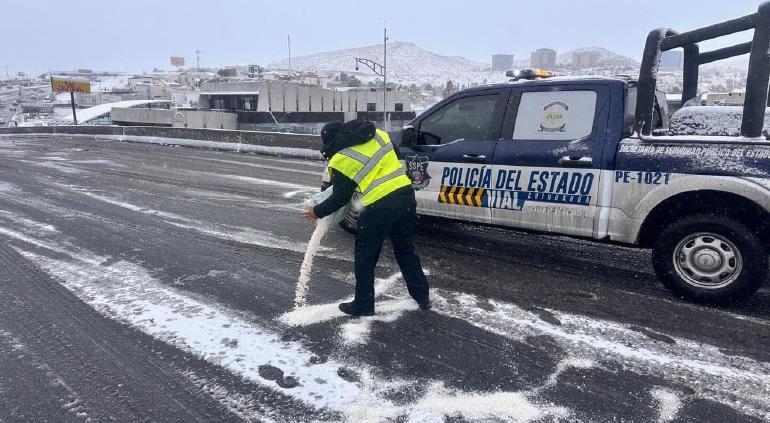 Tras fuerte nevada en Chihuahua, reabrieron puentes y calles que estuvieron cerrados por congelamiento, informó el Director operativo de policía Vial.