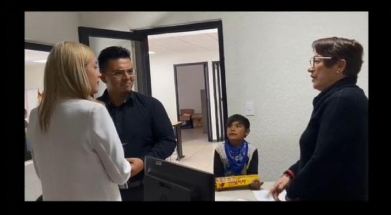 En eso el pequeño preguntó "¿Quiere mazapán?" y la Oficial sólo le dijo que no con el dedo y el niño se retiró de inmediato.