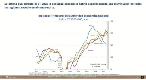A nivel nacional, la actividad económica entre julio y septiembre de este 2025 tuvo una caída del 0.3%, sin embargo, por regiones esto es distinto.