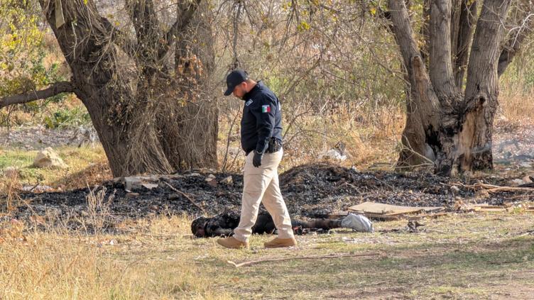 El cadáver de un hombre totalmente calcinado fue hallado en un lote baldío en el cruce de Mina La Soledad y Mina San Guillermo, Colonia Robinson, cerca del río Chuviscar.