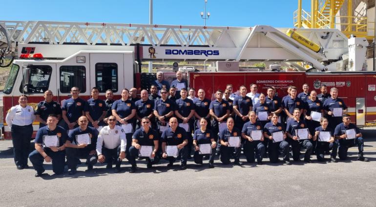 Tras una jornada de capacitación en las instalaciones del Instituto Superior de Seguridad Chihuahua (ISSCUU), el director de Seguridad Pública Municipal, Julio César Salas, encabezó la entrega de constancias a 32 hombres y mujeres como bomberos voluntarios.