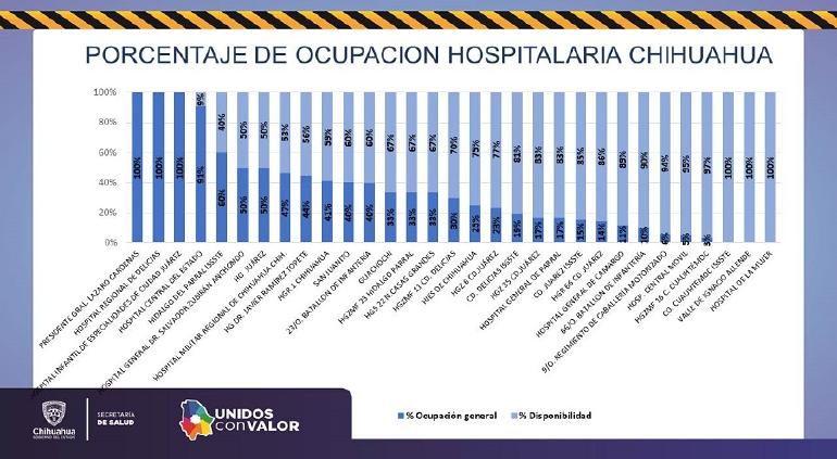 Los nosocomios que este día reportaron saturación fueron el Presidente General Lazaro Cárdenas, así como el Hospital Regional de Delicias y el Hospital Infantil de Especialidades en Juárez.