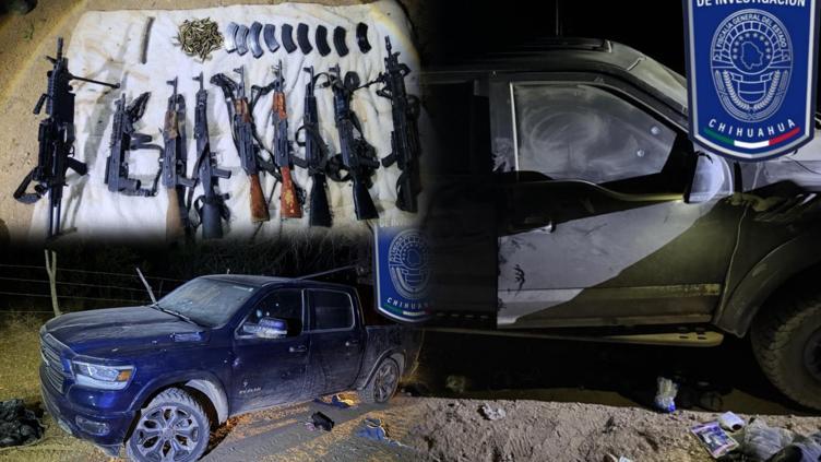 En el lugar fueron asegurados cinco vehículos, entre ellos una camioneta Ford Raptor con reporte de robo en Estados Unidos, así como nueve armas largas de diversos calibres.