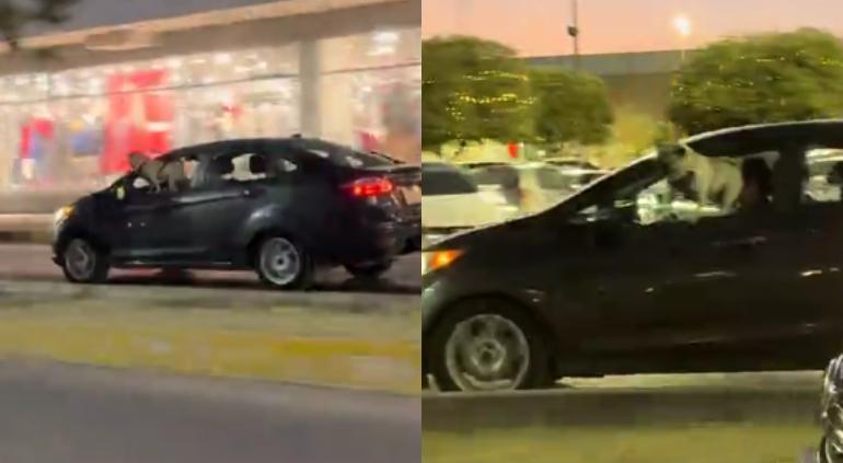 Captaron a una conductora que llevaba a su perrito de raza pug en la ventana de su auto cuando circulaba por la Ortiz Mena.