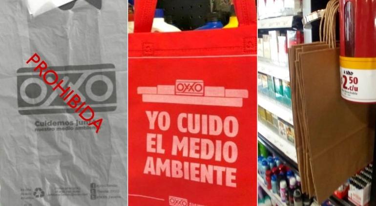 En las distintas sucursales de Oxxo comenzaron a exhibir tiempo atrás las bolsas de tela a 11 pesos que ofrecen a los consumidores para llevar los productos que compran.