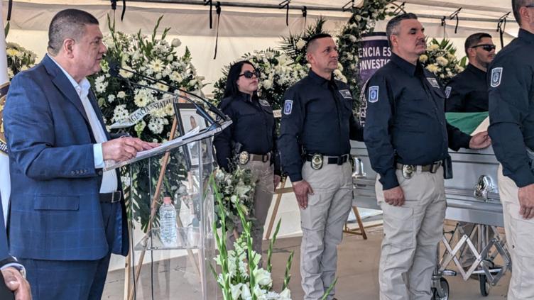 Durante la ceremonia de honor a los elementos de la Agencia Estatal de Investigación, el fiscal general del estado, César Jáuregui, destacó la vocación, entrega y liderazgo de Pedro Román Oseguera Cervantes y Manuel Genaro Méndez Montes, a quienes describió como hombres que dedicaron su vida a la justicia y a la seguridad pública.