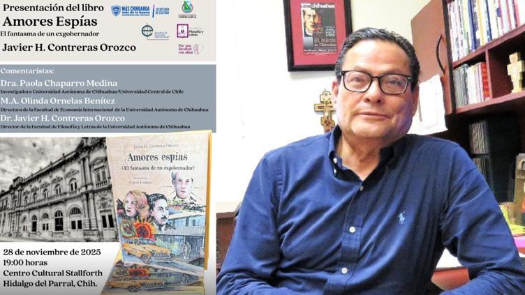 El periodista, catedrático y escritor Javier Contreras Orozco, director de la Facultad de Filosofía y Letras de la Universidad Autónoma de Chihuahua (UACH) presentará hoy su obra ‘Amores espías. El fantasma de un exgobernador’ en el municipio de Hidalgo del Parral.