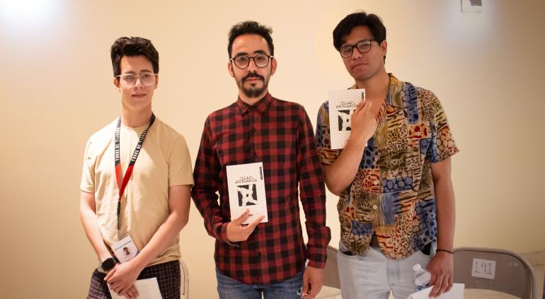 Junto a los presentadores Pedro Dorantes Acosta y Héctor Arturo Sánchez, el joven escritor dio lectura a parte de su obra en el Centro Cultural Paso del Norte en punto de las 19:00 horas, en el auditorio Mahatma Gandhi en el marco de la Fería del Libro de la Frontera.