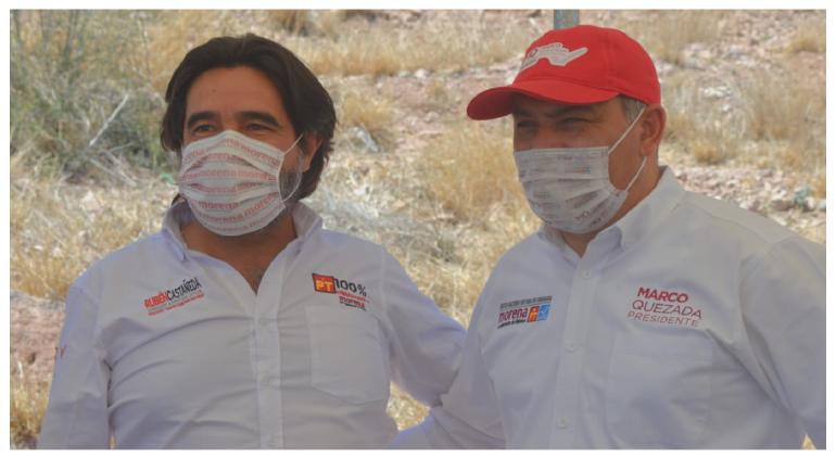 Marco Quezada Martínez, candidato a alcalde en Chihuahua y Rubén Castañeda Mora, quien busca la diputación local del Distrito 16 ayer decidieron reunirse con vecinos de la colonia Rubén Jaramillo, en el Cerro Coronel.