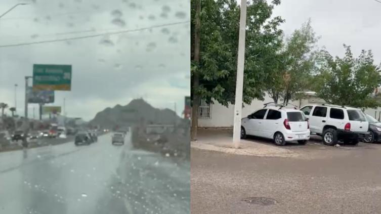 Este jueves se captó una lluvia moderada en la ciudad de Chihuahua, específicamente en la colonia Villas del Real y en el camino a la carretera a Aldama.