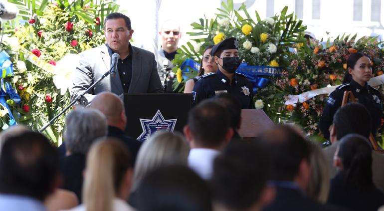 Durante el homenaje a la oficial Gloria López, el presidente Cruz Pérez Cuéllar indicó a la Policía Municipal que cuenta con su compromiso y llamó a que la tragedia inspire a estar a la altura de los tiempos y defender a Ciudad Juárez.