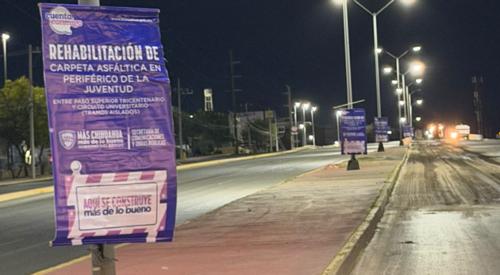 Los trabajos de recarpeteo en el Periférico de la Juventud suman más de 13 mil metros cuadrados, así lo dio a conocer la Secretaría de Comunicaciones y Obras Públicas.