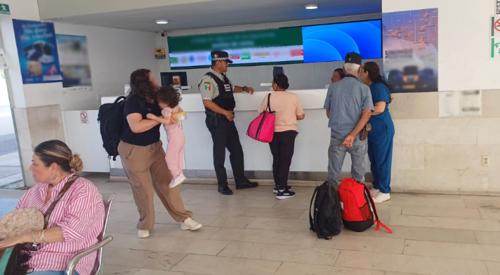 Los agentes abordaron los autobuses para proporcionar recomendaciones a los pasajeros y poner a su disposición el número telefónico 088 de atención ciudadana, donde reciben reportes y canalizan denuncias por posibles delitos.