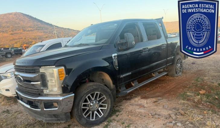 Elementos de la Agencia Estatal de Investigación adscritos a la Fiscalía de Distrito Zona Sur, recuperaron una camioneta Ford, línea F250, modelo 2017, de color negro, reportada como robada el 23 de junio de 2024, en la carretera Chihuahua- Satevó.