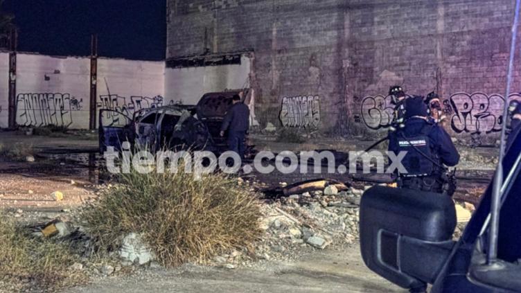 Un vehículo Sentra 2008 quedó totalmente calcinado tras un voraz incendio luego de que chocaron contra la banqueta en el Periférico de la Juventud y Egipto.