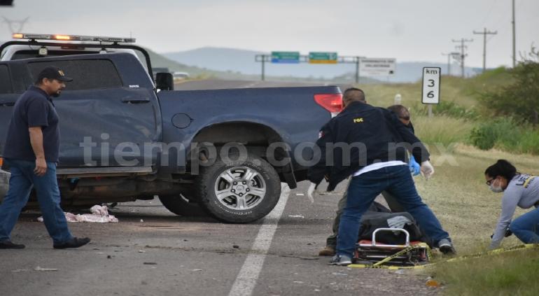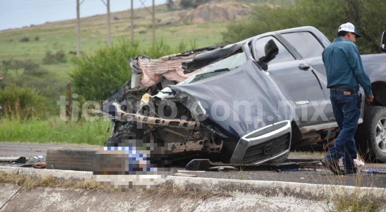 El conductor de pick up Tundra perdió el control del volante y chocó fuertemente contra señalamiento vial en el kilómetro 36 de la carretera a Cuauhtémoc, donde dos personas perdieron la vida y otra más resultó con lesiones de gravedad.