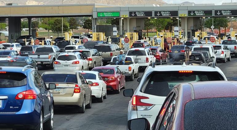 El Puente Internacional Paso del Norte tiene alta afluencia de vehículos por lo cual el tiempo de espera es de 45 minutos y cuenta con 3 carriles abiertos para cruzar.