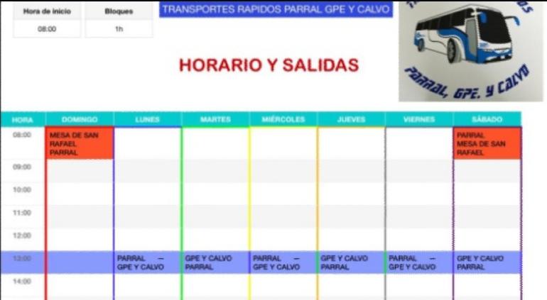 Por otro lado la corrida de Parral a Mesa de San Rafael será los sábados a las 8:00 de la mañana mientras que el retorno el domingo a la misma hora.