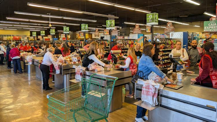 Por compras navideñas de última hora se registra fuerte afluencia y escasez de productos para la cena en supermercados.