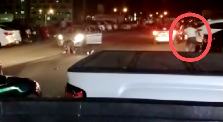 Personas quienes salían del lugar observaban la escena y los vehículos que intentaban circular estaban obstaculizados por los carros de quienes protagonizaron la contienda.
