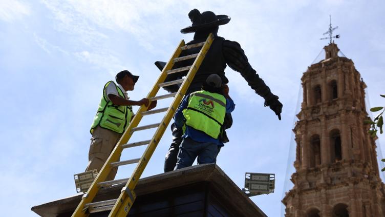 Sacan brillo a estatua de Deza y Ulloa por aniversario de Chihuahua 📸