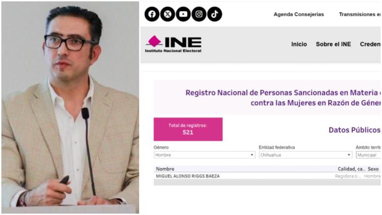 El regidor de Morena, Miguel Alonso Riggs Baeza, fue registrado oficialmente como sancionado por violencia contra las mujeres en los padrones estatal y federal, donde permanecerá inscrito hasta el 6 de abril de 2026.