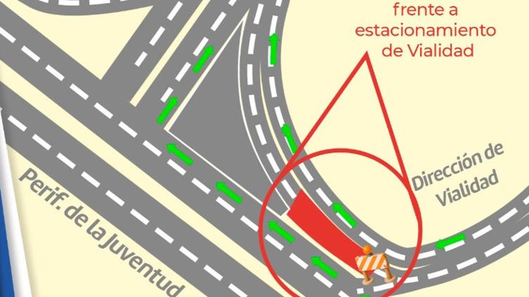 El Gobierno Municipal compartió una imagen de cómo será el cierre que se realizará la próxima semana en el Periférico de la Juventud a la altura del estacionamiento de Vialidad.