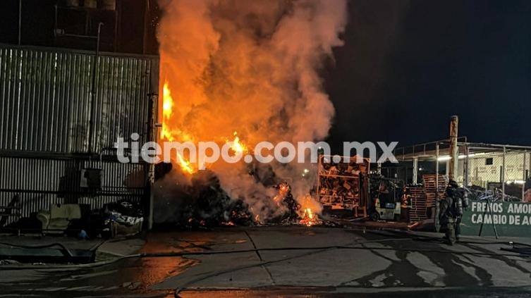 Un fuerte incendio generó alarma en la entrada de una recicladora de cartón y plástico ubicada en la Colegio Militar y casi Monte Albán, donde bomberos desplegaron un operativo para controlar las llamas.