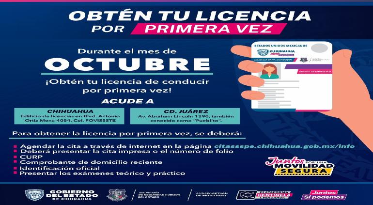 Para obtener la licencia por primera vez, es necesario agendar cita en citassspe.chihuahua.gob.mx/info, presentar la cita impresa o el número de folio, además de la CURP, identificación oficial y comprobante de domicilio, para realizar los exámenes teórico y práctico.