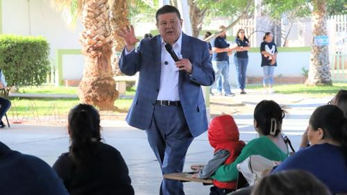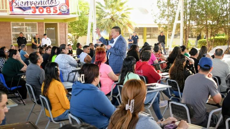 “Solamente si hacemos sinergia entre maestros, padres de familia y alumnos, vamos a poder tener éxito en prevenir muchas de las situaciones de riesgo que pueden enfrentar los jóvenes”, expresó durante la Feria de Servicios realizada en el plantel ubicado en la colonia Manuel Buendía.