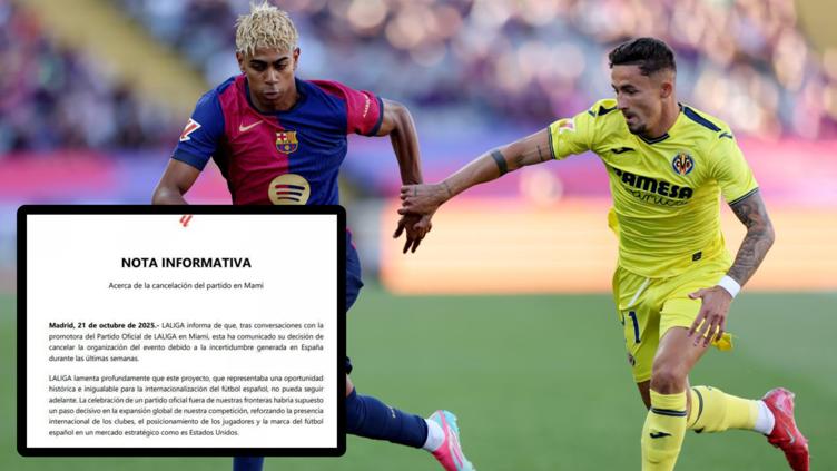 LaLiga canceló el partido oficial entre Barcelona y Villarreal que se jugaría en Miami, tras la decisión de la empresa organizadora de suspender el evento por falta de garantías estables.
