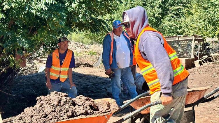 Por instrucción de la gobernadora Maru Campos, la Secretaría de Comunicaciones y Obras Públicas (SCOP) realiza trabajos de apoyo a las familias afectadas en la colonia Juárez, luego de las fuertes lluvias registradas en días recientes en el municipio de Casas Grandes.