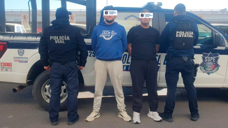 La Secretaría de Seguridad Pública del Estado (SSPE) presentó a dos hombres detenidos por un intento de privación ilegal de la libertad en Chihuahua capital; los señalados quedaron identificados como Lorenzo V. A. y Víctor Manuel V. A., y la institución informó sobre la intervención policiaca oportuna.
