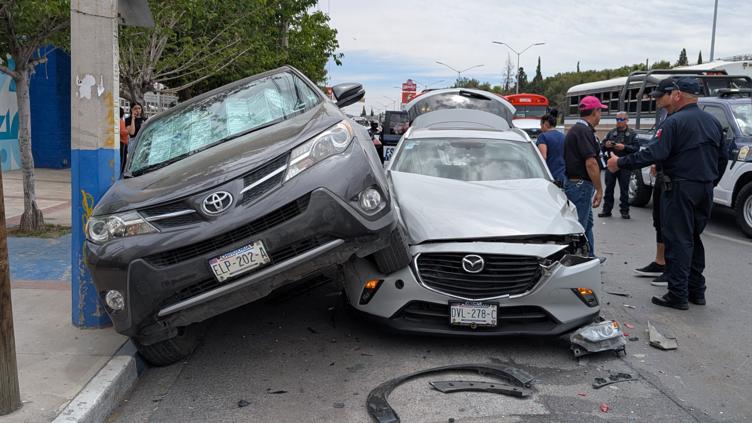 Tras el primer choque, la unidad colisionó contra dos vehículos más, con saldo de otras dos personas lesionadas que también recibieron atención médica.