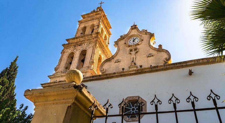 El ciprés del altar mayor, de estilo neoclásico, es de cantera blanca decorada con columnas salomónicas.