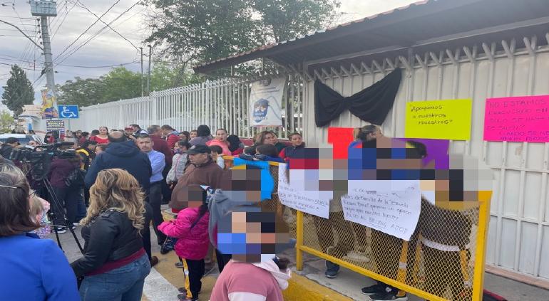 A las 07:00 horas comenzaron a llegar los padres de familia para colocar pancartas en la escuela y permanecieron al exterior para llevar a cabo la manifestación pacífica.