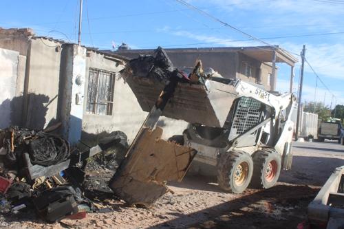 La Dirección de Servicios Públicos Municipales ayudó a una familia de la colonia CDP, al norte de la ciudad, en el retiro de pertenencias dañadas, luego de que su vivienda resultara afectada por un incendio.