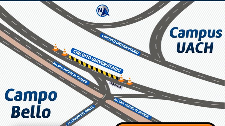 Desde el martes 30 de septiembre, de 8:00 a 17:00, reducirán el carril izquierdo en Circuito Universitario a la altura de Campo del Norte por obra Trayecto Seguro Vial; el derecho quedará abierto.