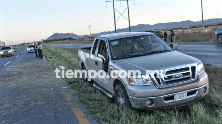 Truena llanta y vuelca pick up Lobo en la carretera a Juárez