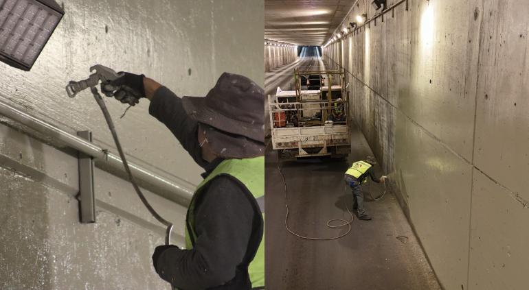 Actualmente se llevan a cabo trabajos nocturnos de pintura en el túnel de la avenida La Cantera por parte de la Dirección de Mantenimiento Urbano.