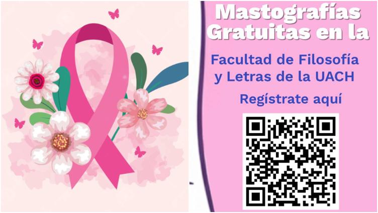 A través de sus redes sociales, la Facultad de Filosofía y Letras de la UACH, dio a conocer que este 2 de octubre en sus instalaciones estarán realizando mastografías gratuitas como una actividad preventiva contra el cáncer de mama.