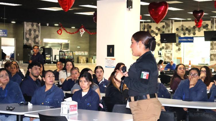 La Policía Municipal, mediante el programa Siempre Acompañadas, imparte pláticas y mecanismos de prevención a trabajadoras de la maquila.