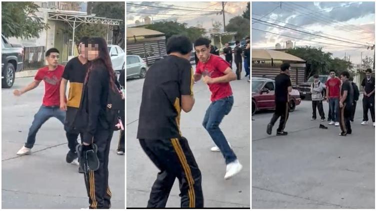 El incidente fue captado por los estudiantes que se reunieron para presenciar la pelea, realizada en plena calle.