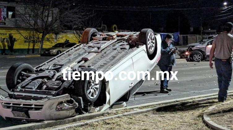 Una mujer resultó con lesiones luego de un aparatoso choque y volcadura sobre la Guillermo Prieto Luján, frente a la colonia Los Olivos.