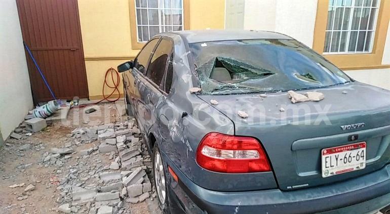 Las rafágas de viento que azotaron este día en la ciudad de Chihuahua, causaron la caída de una barda de blocks en el exterior de un domicilio de la colonia Vistas del Norte, lo que dejó daños en un vehículo estacionado.
